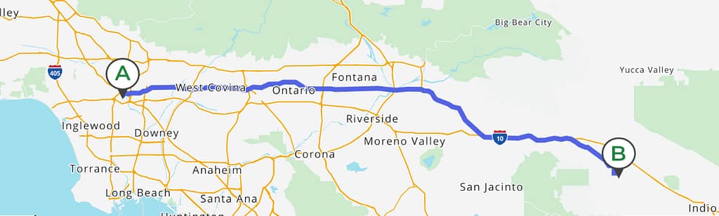Driving Time from Los Angeles to Palm Springs