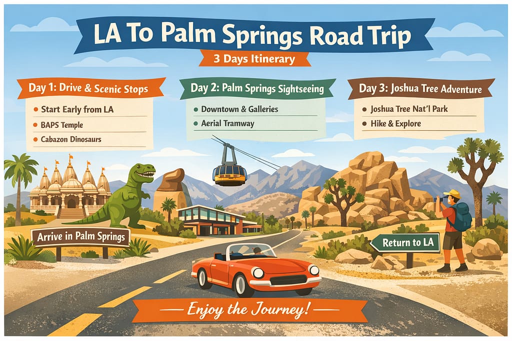 LA to Palm Springs road trip starts like a routine freeway drive, but it quickly shifts into something far more memorable.