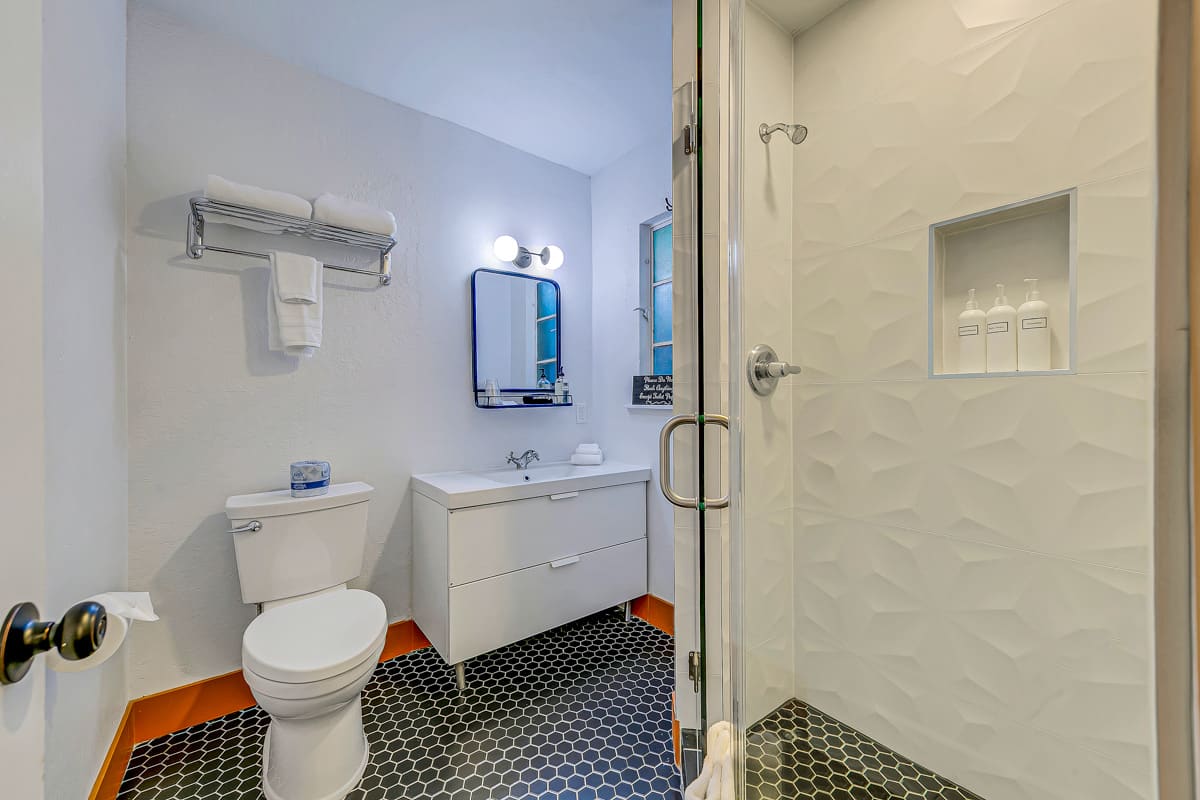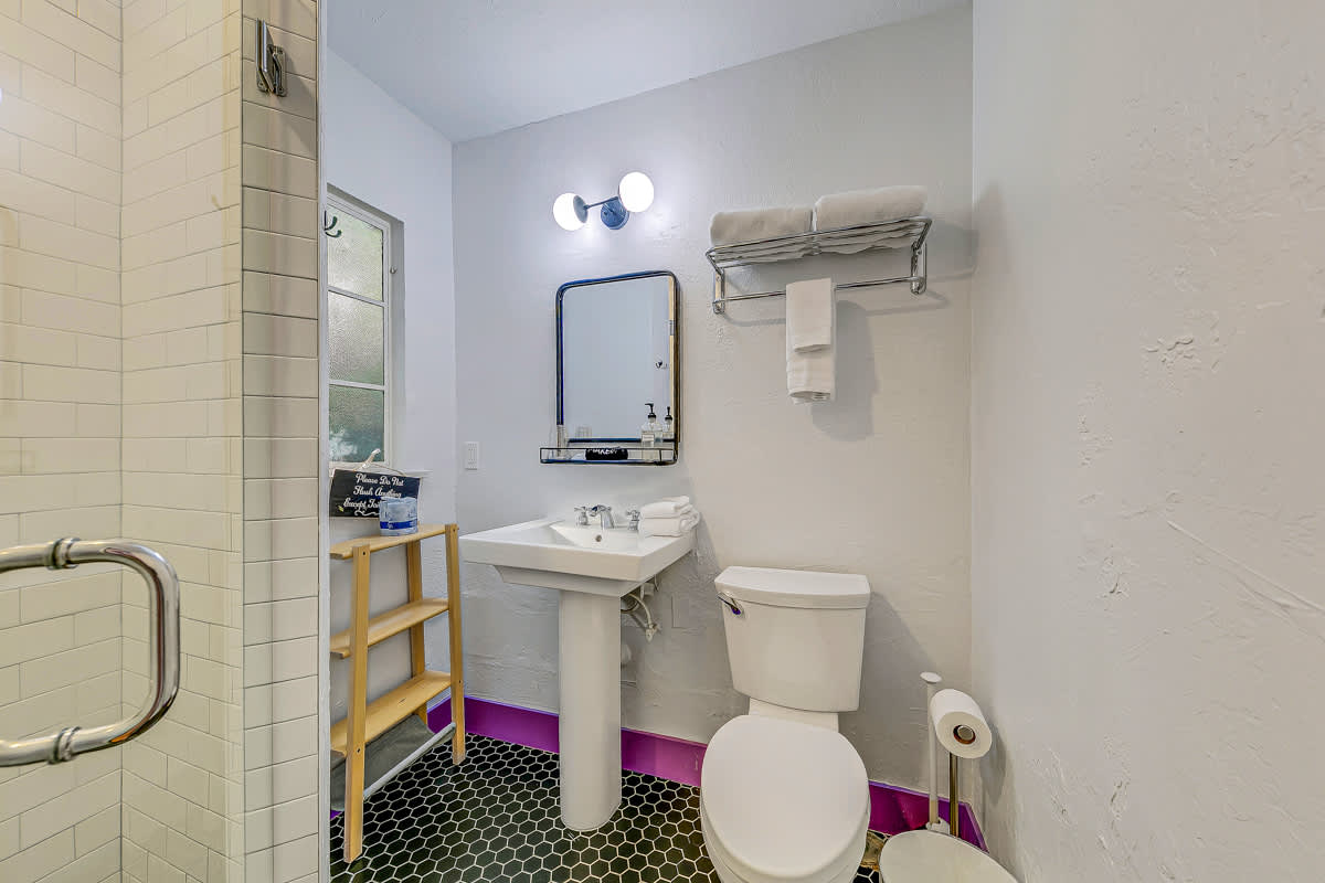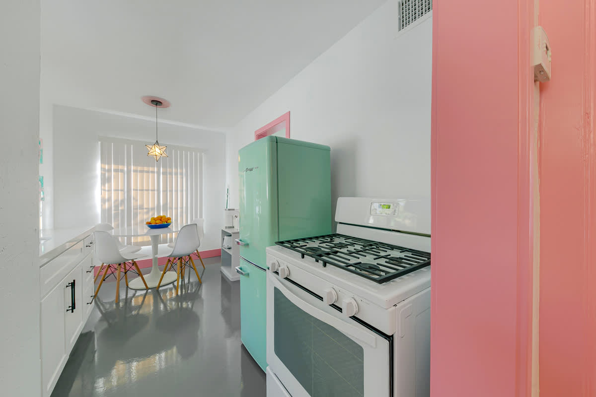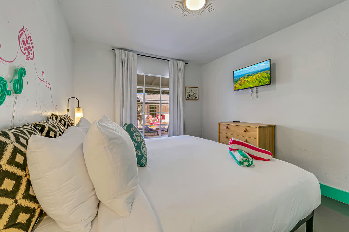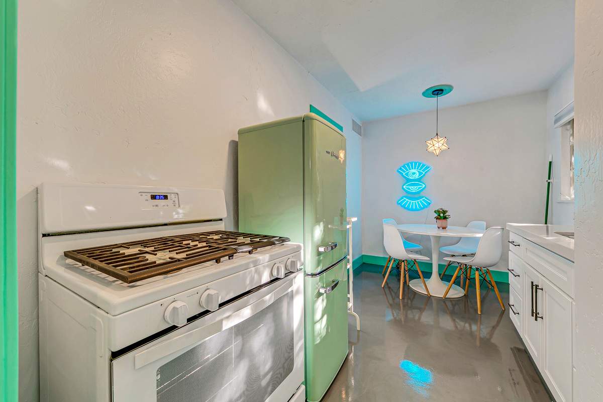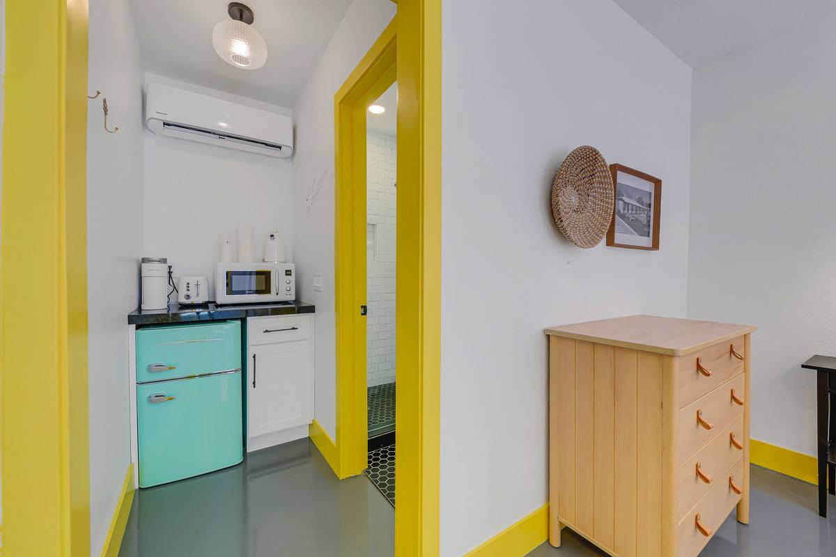 Spirit of Sofia’s Poolside Adventure is the most Palm Springiest experience in all of Palm Springs! Located in Downtown Palm Springs, Spirit of Sofia is framed by the backdrop of mountains, palm trees, and midcentury modern homes. Step outside your room/cabana and right into the pool. Spirit of Sofia has it all with heated pool, hot tub, grill, outdoor kitchen and dining, floaties, neon signs, bright colors, rainbows, road bikes, and ample cozy spaces 🙂