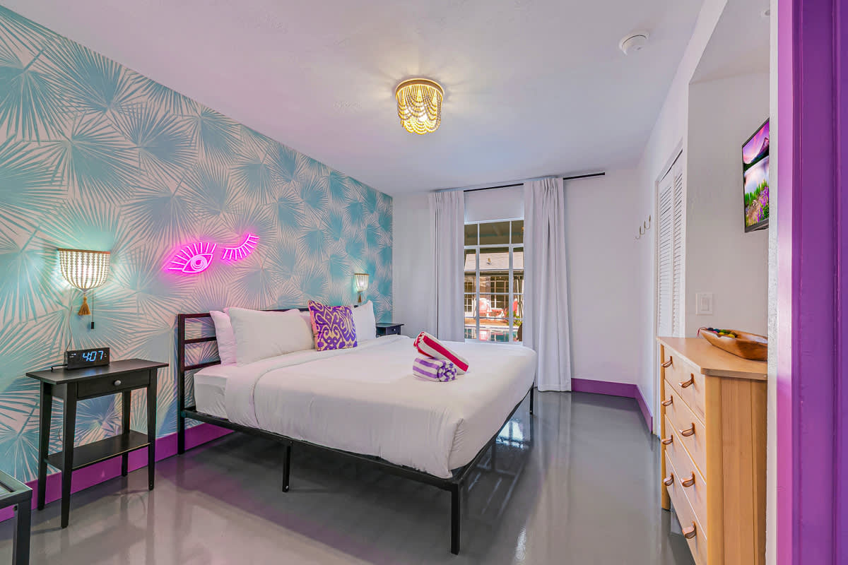 🎨 Bright colors, floaties, neon signs, rainbows, and retro vibes await… this is your poolside paradise.