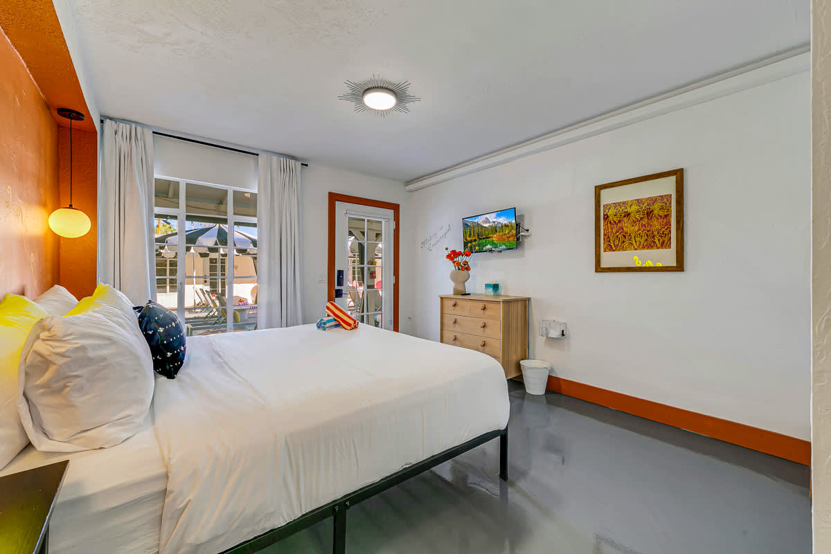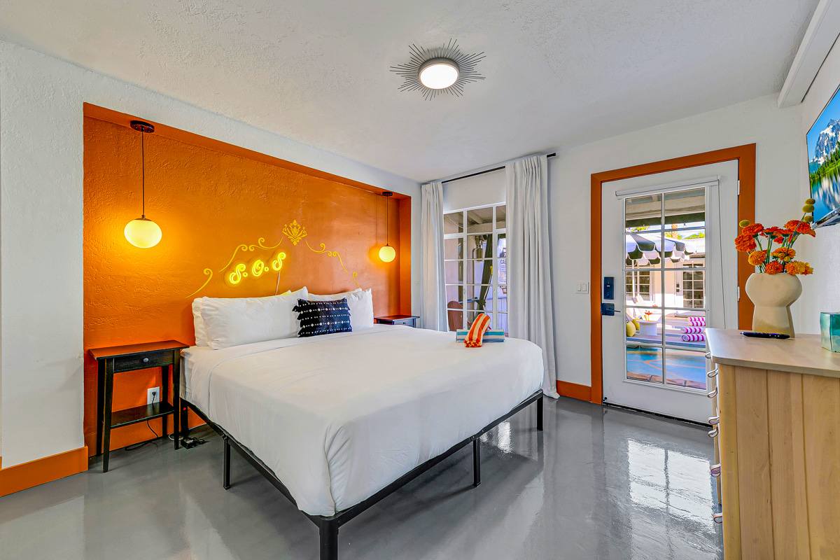 Step into the most Palm Springiest experience in all of Palm Springs! ☀️ Nestled in the heart of Downtown, Spirit of Sofia is framed by dreamy desert mountains, tall palms, and iconic mid-century modern homes 🌴🏠. Slide open your cabana door and dive straight into the vibrant pool scene – no elevators, no lobbies, just sunshine and style!