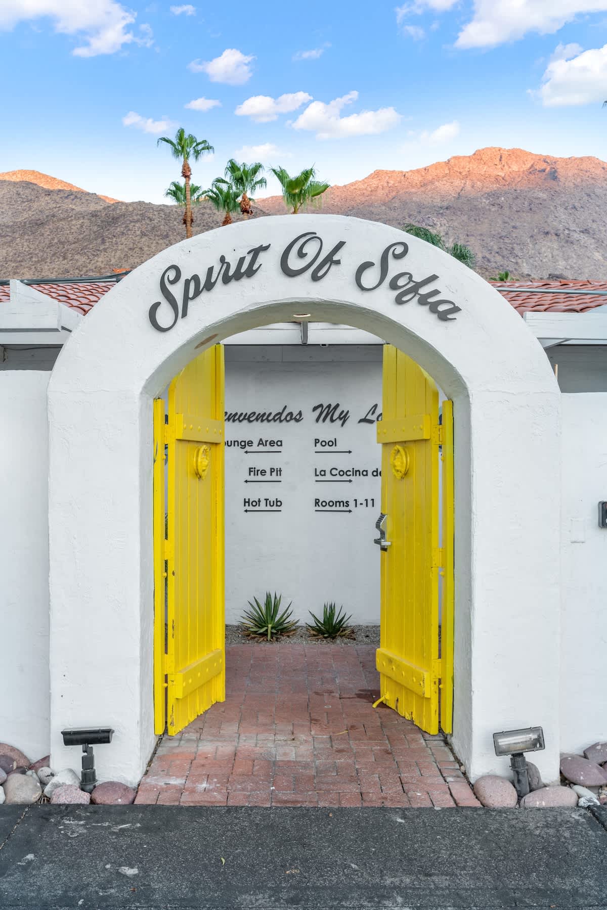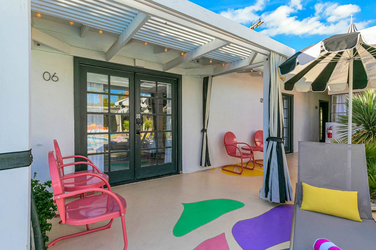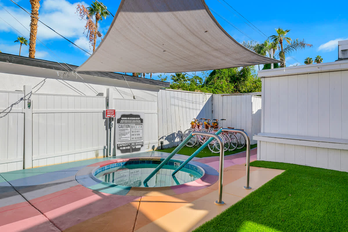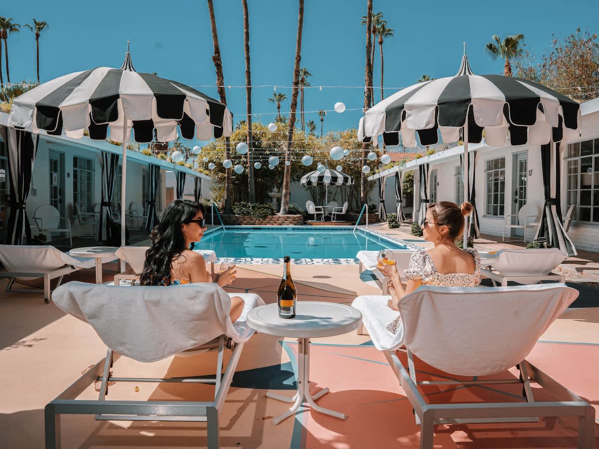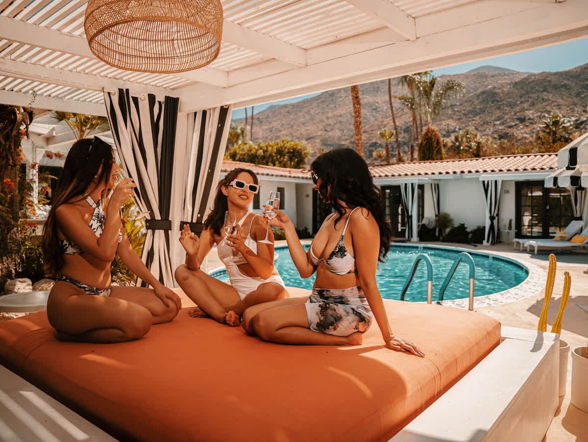 Complete hotel buyout! Sleeps 50+! Spirit of Sofia’s Poolside Adventure is the most Palm Springiest experience in all of Palm Springs! Located in Downtown Palm Springs, Spirit of Sofia is framed by the backdrop of mountains, palm trees, and midcentury modern homes. Step outside your room and right into the pool. Spirit of Sofia has it all with heated pools, hot tubs, grills, outdoor dining, ample poolside seating, floaties, neon signs, rainbows, road bikes, and even a life-size chess board!