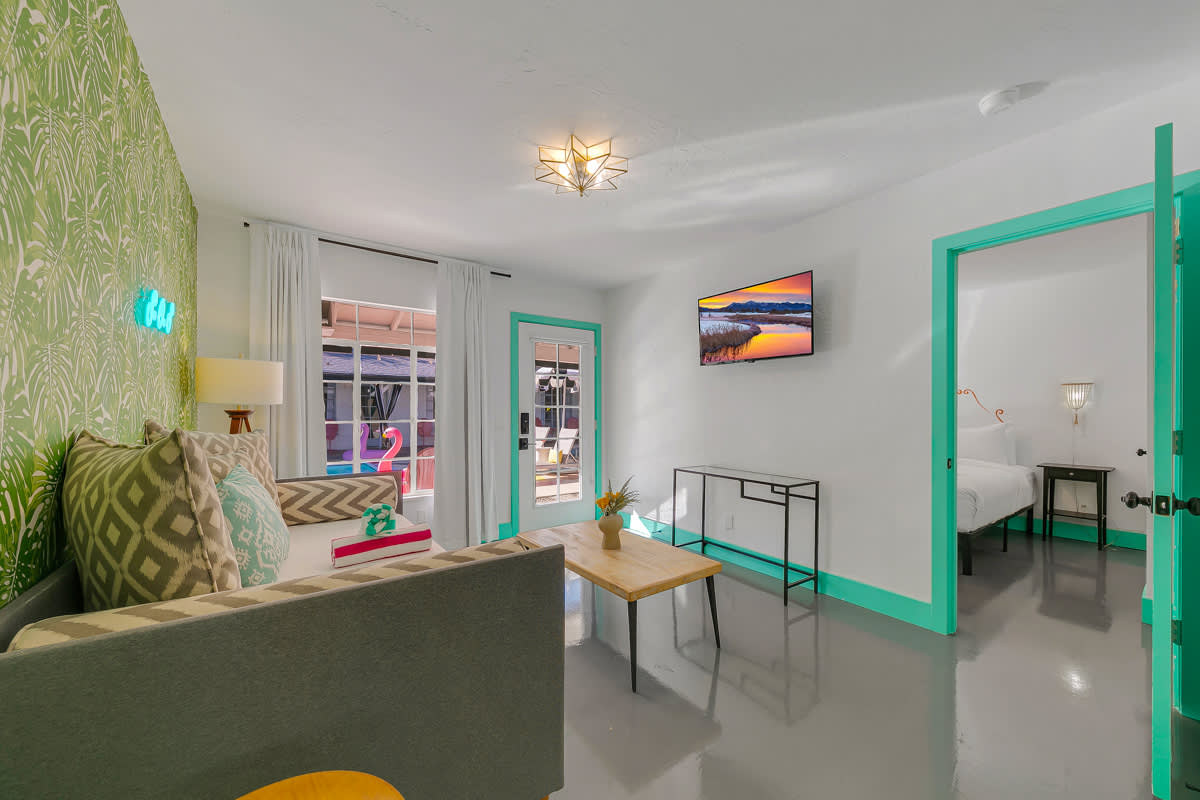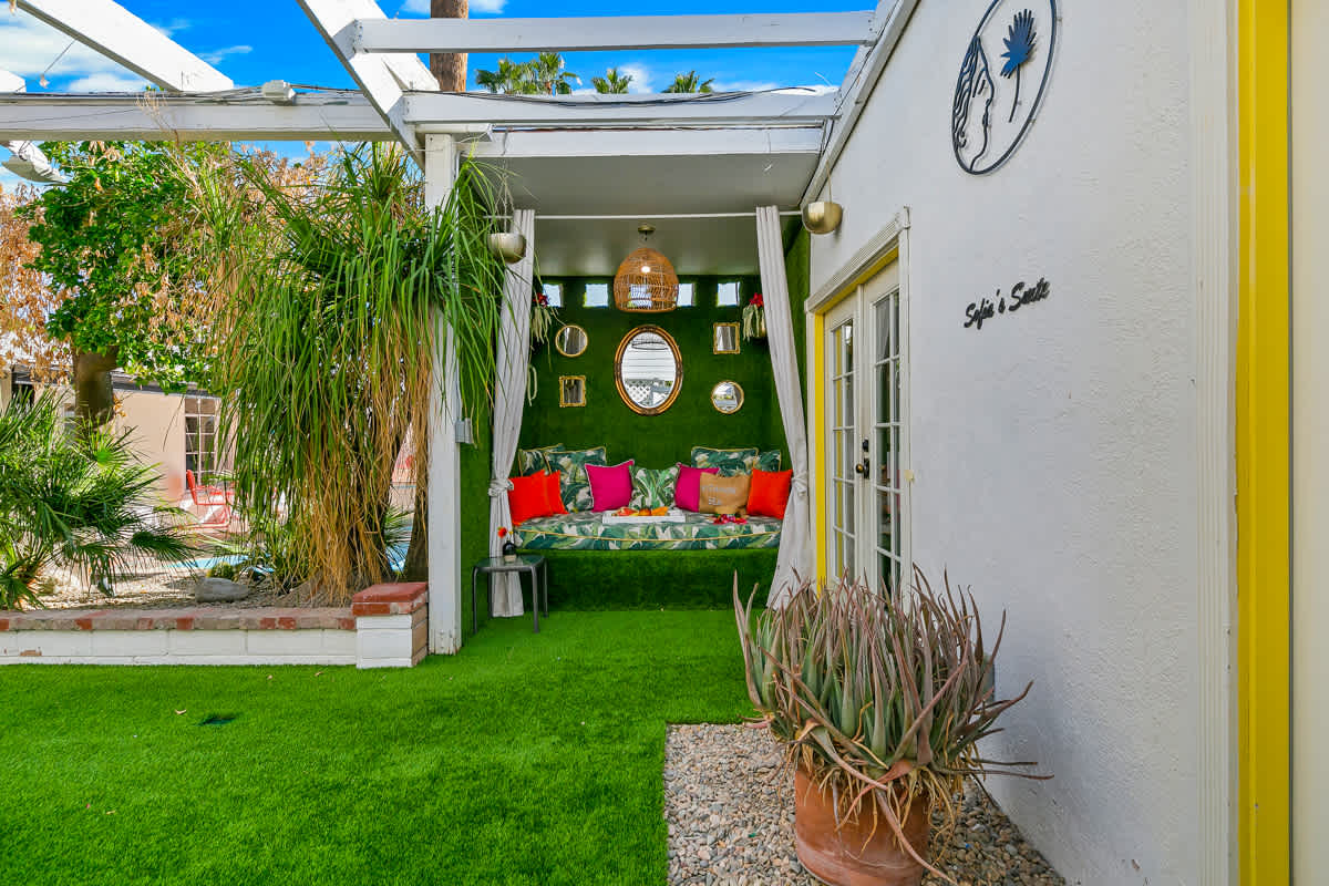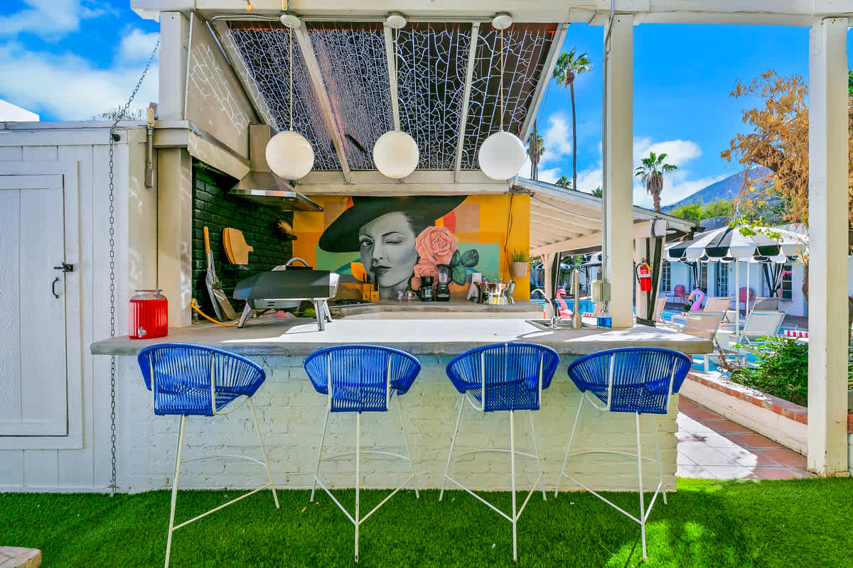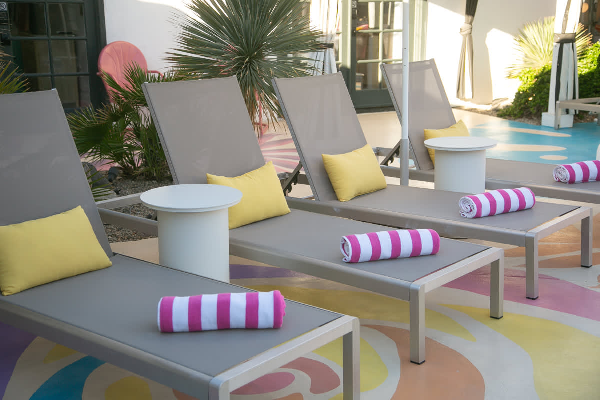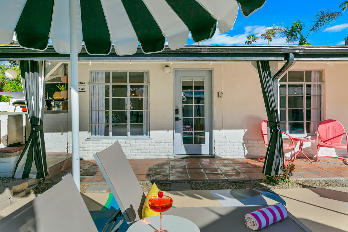 Complete hotel buyout! Sleeps 50+! Spirit of Sofia’s Poolside Adventure is the most Palm Springiest experience in all of Palm Springs! Located in Downtown Palm Springs, Spirit of Sofia is framed by the backdrop of mountains, palm trees, and midcentury modern homes. Step outside your room and right into the pool. Spirit of Sofia has it all with heated pools, hot tubs, grills, outdoor dining, ample poolside seating, floaties, neon signs, rainbows, road bikes, and even a life-size chess board!