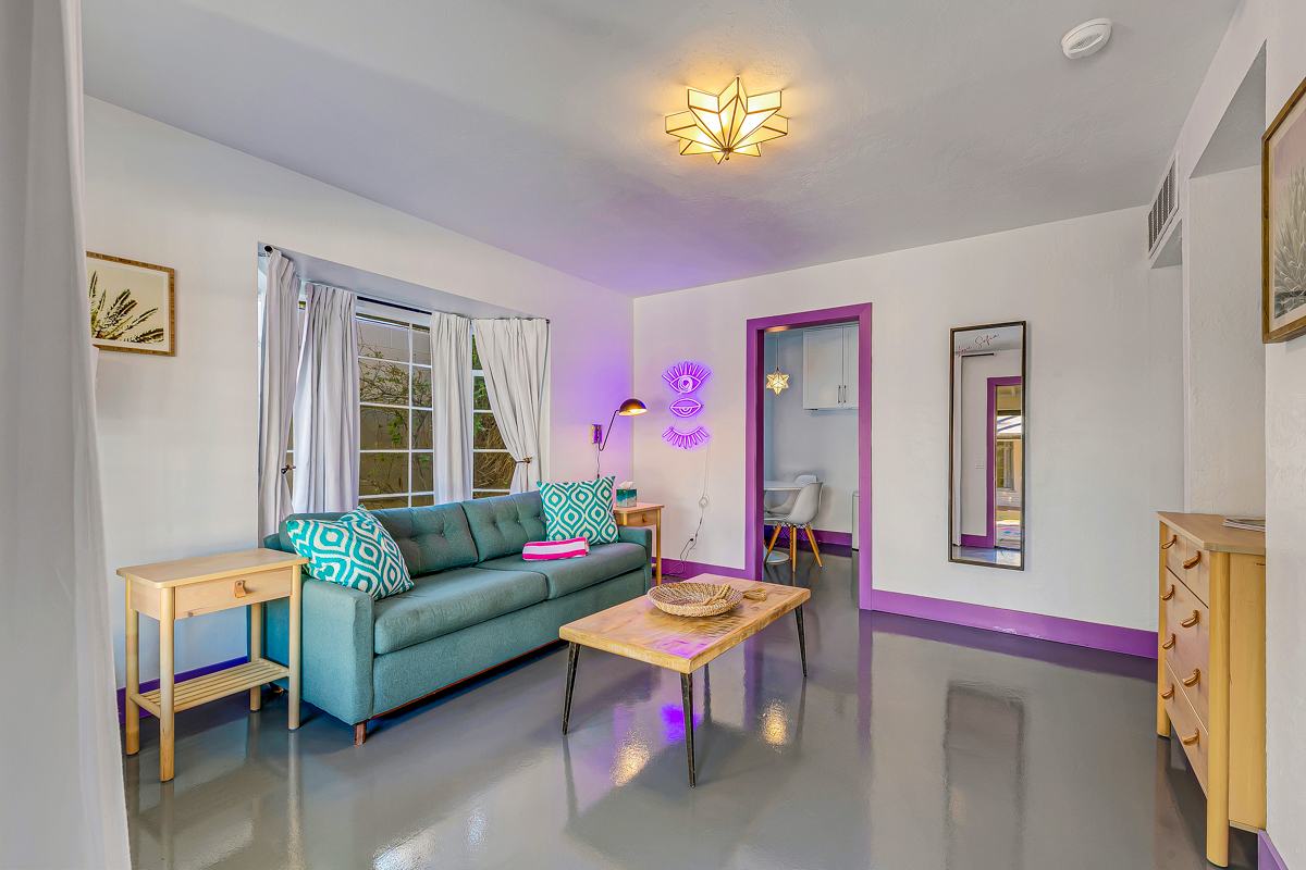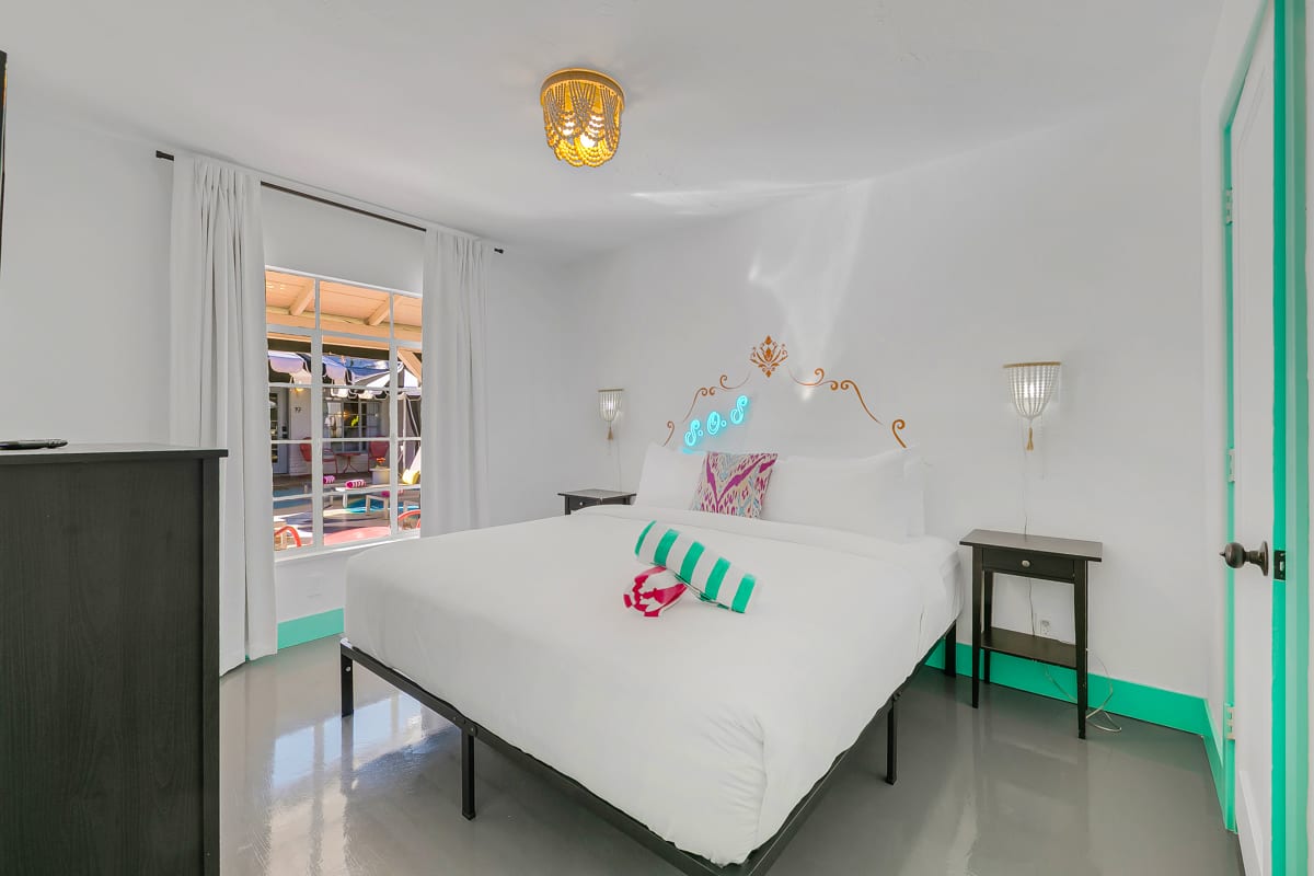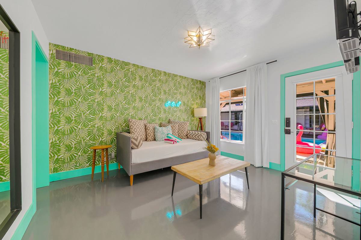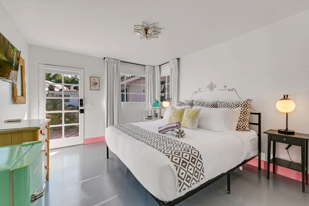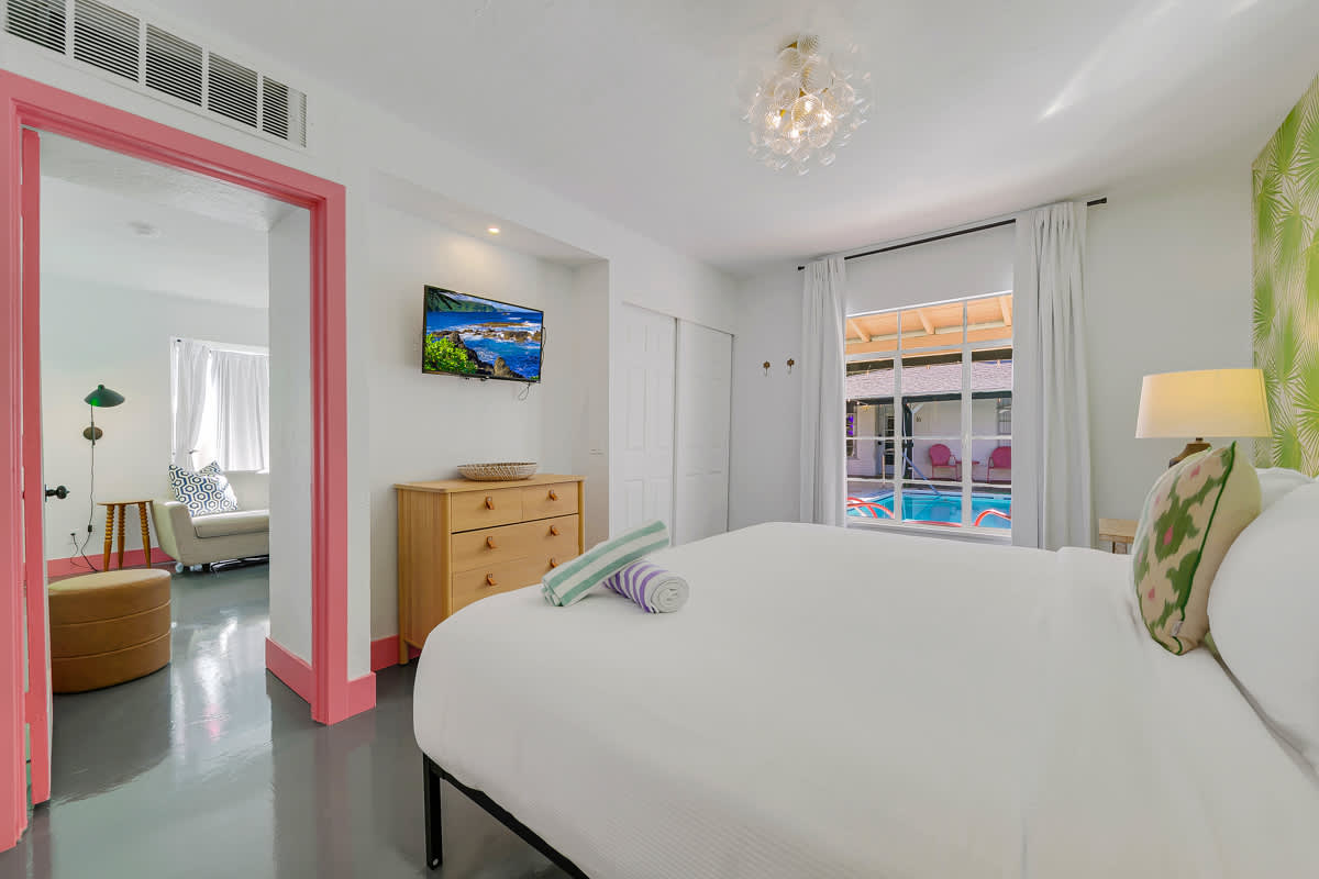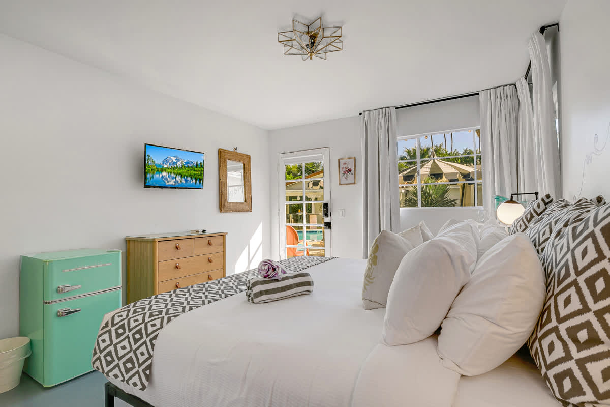 Complete hotel buyout! Sleeps 50+! Spirit of Sofia’s Poolside Adventure is the most Palm Springiest experience in all of Palm Springs! Located in Downtown Palm Springs, Spirit of Sofia is framed by the backdrop of mountains, palm trees, and midcentury modern homes. Step outside your room and right into the pool. Spirit of Sofia has it all with heated pools, hot tubs, grills, outdoor dining, ample poolside seating, floaties, neon signs, rainbows, road bikes, and even a life-size chess board!