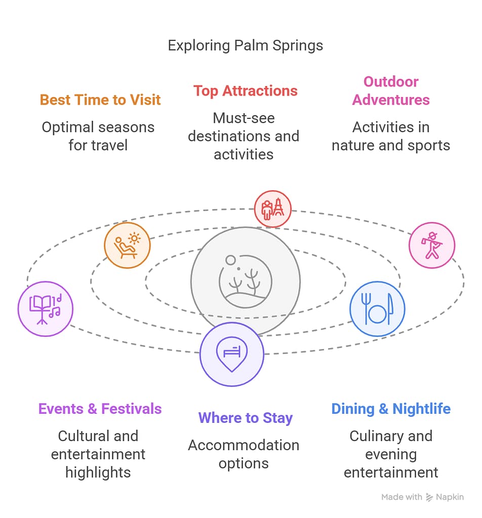 Palm Springs is a premier desert destination known for its luxury resorts, outdoor adventures, mid-century modern architecture, and year-round sunshine. Whether you’re visiting for a relaxing getaway, outdoor activities, or cultural experiences, Palm Springs has something for everyone.